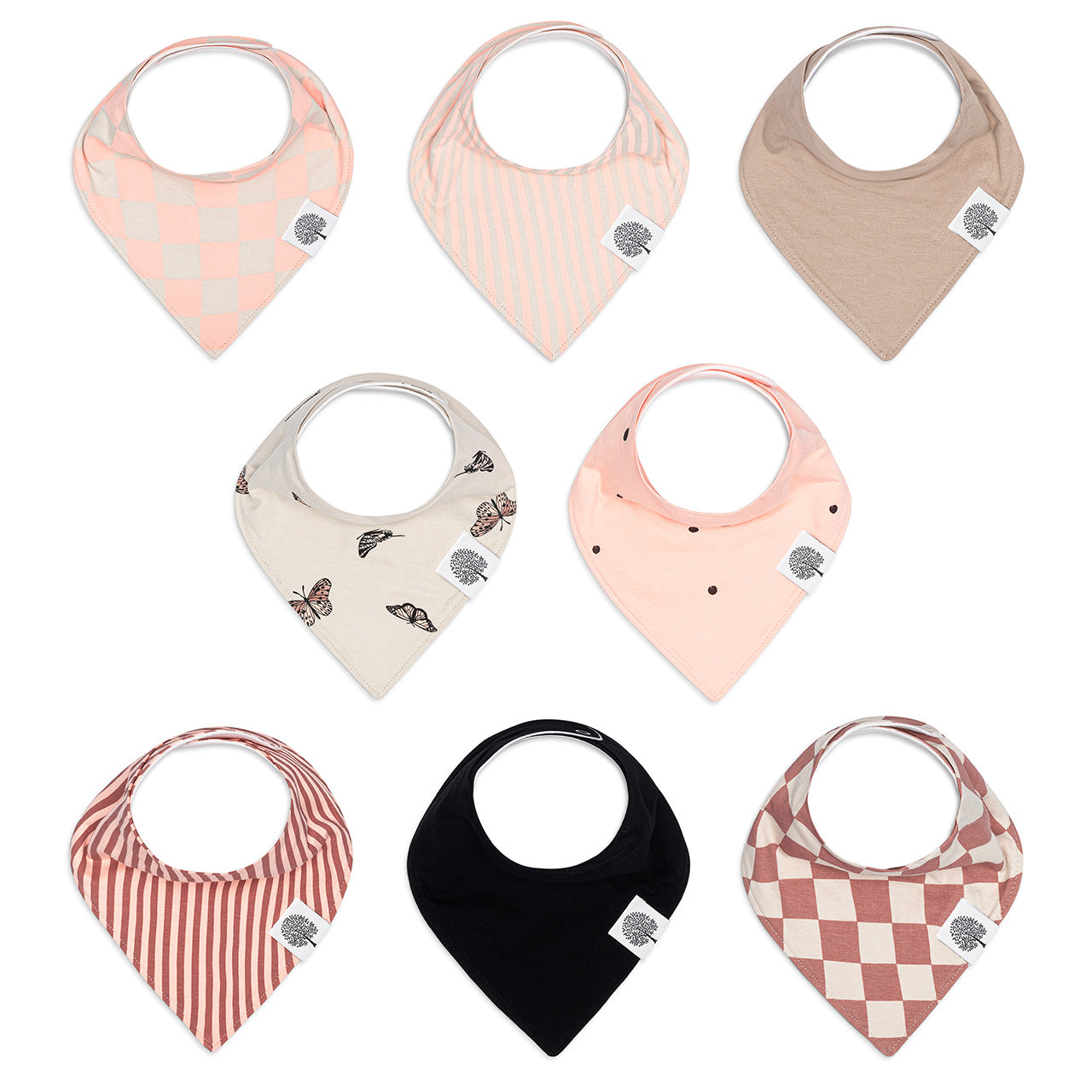 Babies drool a LOT - and when you dress your baby in cute outfits, there's nothing worse than having to change them because they soaked through. Our Drool Bandana Bibs change the game: instead of swapping their outfit every few hours, just snap a bib over their clothes to keep them dry! Designed with soft, absorbent cotton, our bibs soak up drool, spit up, and food mess like a sponge. Adjustable, nickel-free snaps grow with your baby and make slipping them on easy. Browse our countless bib set options to find the perfect set you're looking for - we have everything from playful girly sets and holiday-themed options, to neutral colors that will go with all your baby's outfits.