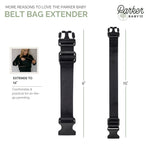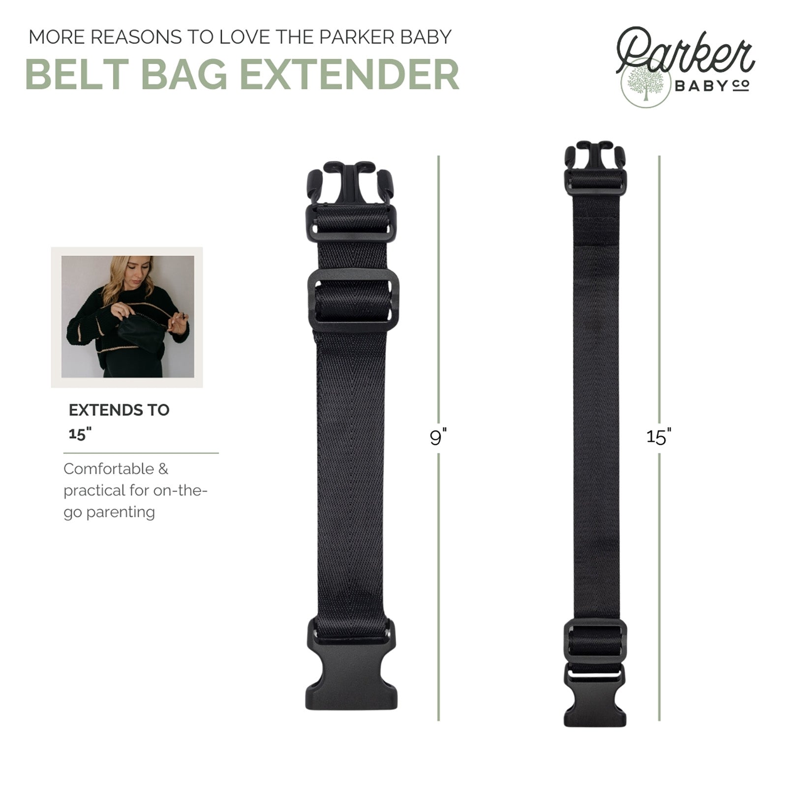 Our Belt Bag Extension was designed to give you more room, more flexibility, and more comfort while wearing your Parker Baby Co. Belt Bag. Whether you prefer a looser crossbody fit, are layering over bulky sweaters, or are navigating pregnancy and postpartum, this belt bag strap extender helps your bag grow with you.