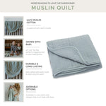 Made with 100% Muslin Cotton, our Dune Quilt is buttery soft to the touch and gets softer with every wash. Designed to be loved for years, you won't have to worry about rips, fraying, or fading. Our muslin cotton quilts are gentle on your baby's sensitive skin and soothing for bedtime, nap time, and all the snuggles in between.