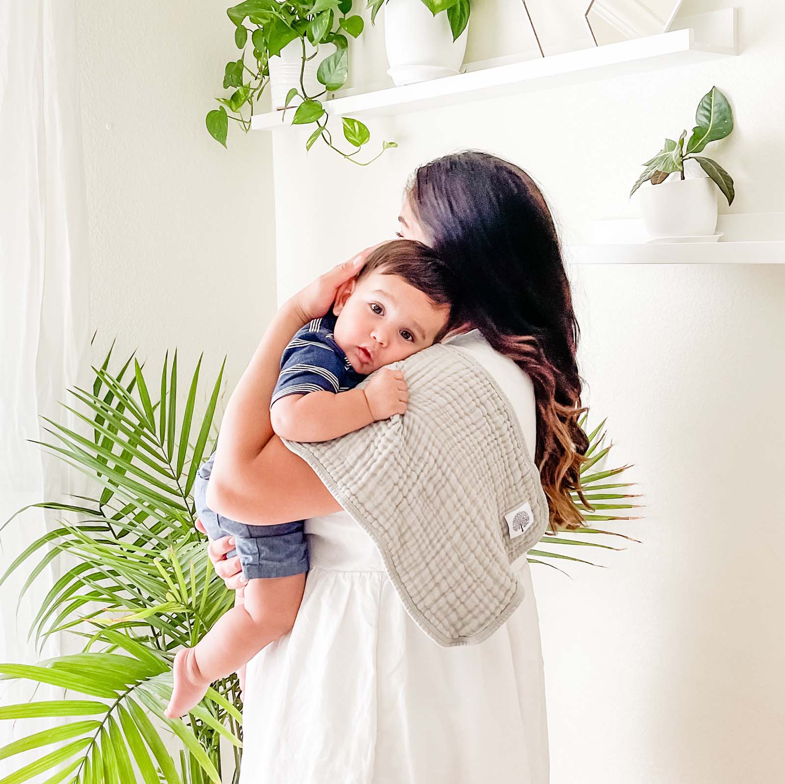Made with 100% Muslin Cotton, our burp cloths are ideal for babies with sensitive skin. Buttery soft to the touch and gentle for any mess, they are perfect for dabbing away spit up, food, or drool from your baby's face. We designed our burp cloths with 6 layers of cotton, so you can soak up any mess.