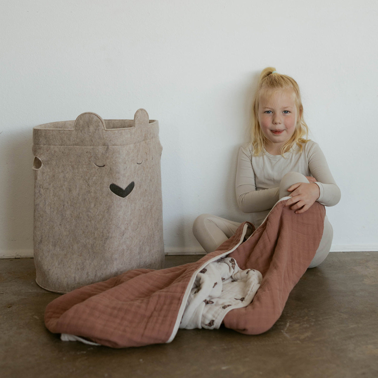 Oatmeal Bear Felt Laundry Hamper: Fun-sized, able to carry heavy loads, and collapsible